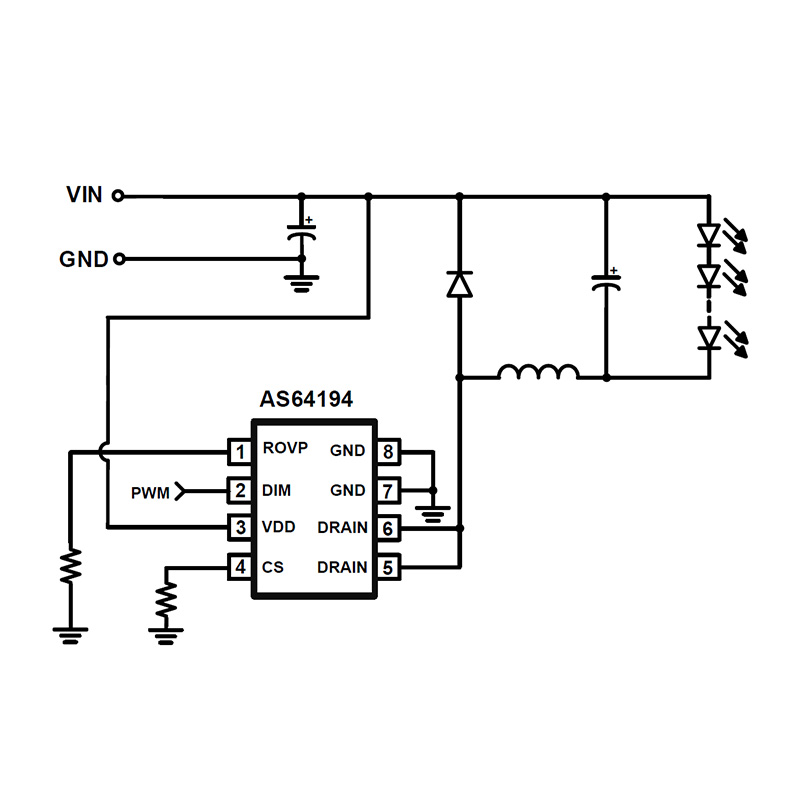 AS64194 ایک اسٹیپ ڈاون ایل ای ڈی مستقل کرنٹ پاور سوئچ ہے جو کم وولٹیج ڈی سی ان پٹ کے لیے موزوں ہے، ڈیپ ڈمنگ، ان پٹ 20V ~ 80V کے ساتھ سٹیپ ڈاؤن ہائی پاور ڈمنگ ایل ای ڈی ڈرائیور ایپلی کیشنز کے لیے موزوں ہے۔ چپ انڈکٹو کرنٹ کریٹیکل آن موڈ میں کام کرتی ہے اور 200kHz کی زیادہ سے زیادہ آپریٹنگ فریکوئنسی کو سپورٹ کرتی ہے، جس میں اعلی کارکردگی اور اچھی درستگی کے فوائد ہیں۔ زیادہ سے زیادہ 1A آؤٹ پٹ کرنٹ فراہم کرنے کے لیے AS64194 میں بلٹ ان کم آن ریزسٹنس 110mΩ پاور MOSFET ہے جس میں ایڈجسٹ آؤٹ پٹ کرنٹ ہے۔