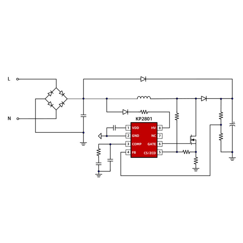KP2801SGA بلٹ ان ہائی وولٹیج اسٹارٹ اور پاور سپلائی سرکٹ، بیرونی پاور سپلائی کے بغیر تیزی سے اسٹارٹ اور پاور فنکشن حاصل کرسکتا ہے۔ اس کے علاوہ، معاون وائنڈنگز کے بغیر ڈیگاسنگ کا پتہ لگانے والی ٹیکنالوجی سسٹم کے ڈیزائن کو آسان بناتی ہے اور پیداواری لاگت کو کم کرتی ہے۔
